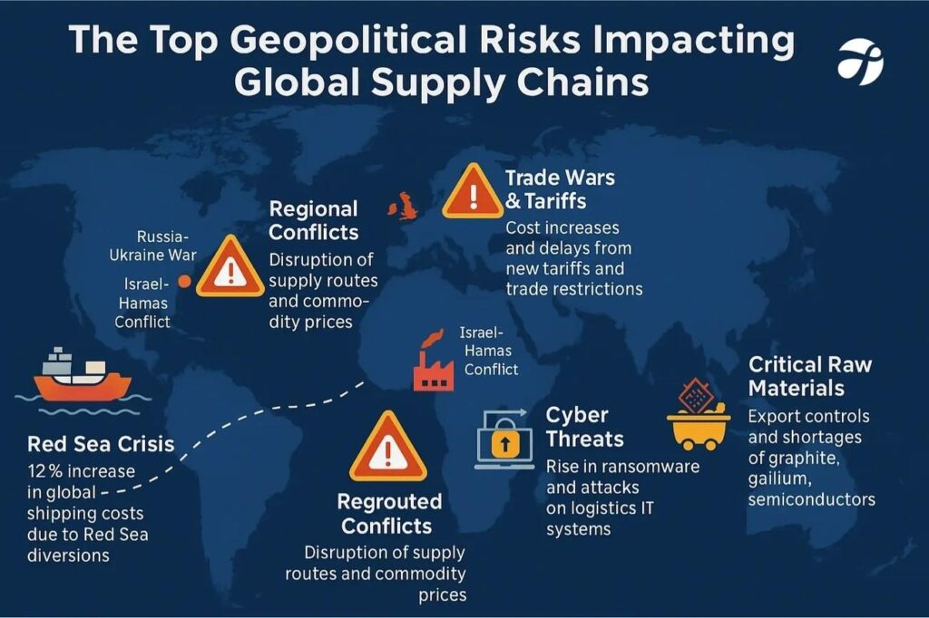 - Geopolitical disruptions that force vessels to change routes and create uncertainty