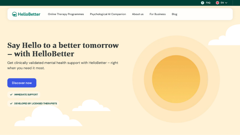 HelloBetter is an online platform that offers therapy and mental health programs to help people cope with stress, anxiety, depression, and other emotional challenges. It provides structured courses and exercises that can be done from home guided by professional therapists or psychologists.