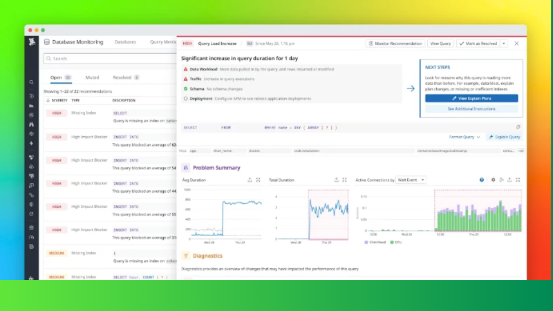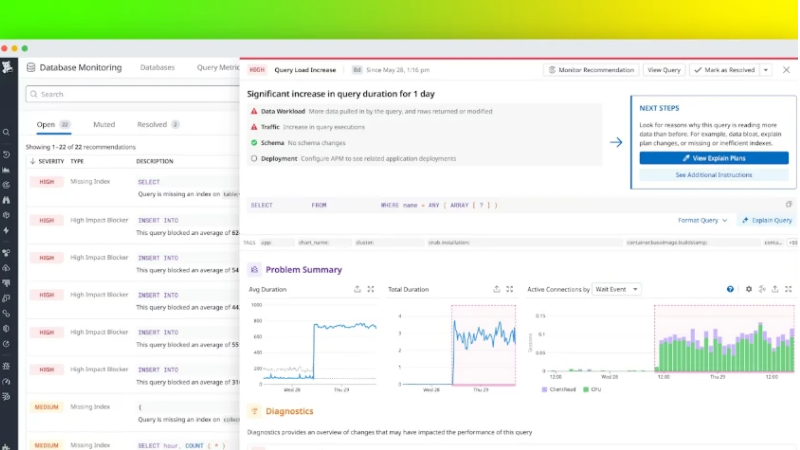 - Best for cloud-scale monitoring: Datadog Database Monitoring.