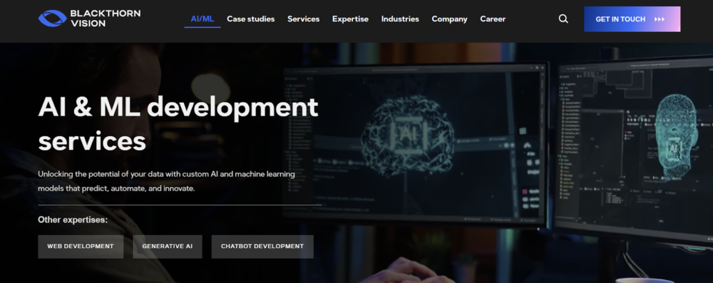 Engagement models include dedicated teams or full-cycle development. They build cloud-native apps on Azure, AWS, and GCP. They handle MLOps to keep models stable post-deployment. They structure messy data for production use.